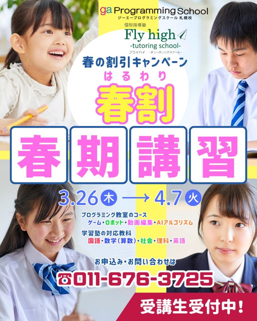 gaプログラミングスクール & 個別指導塾Fly high です。